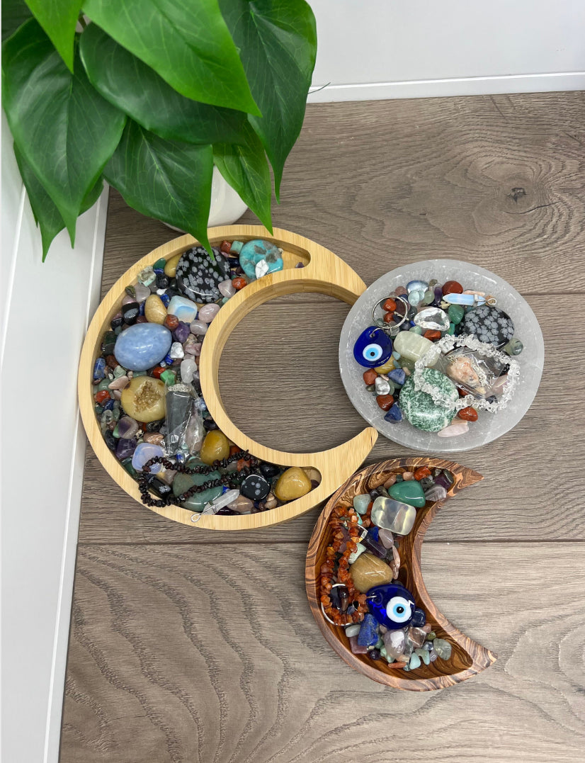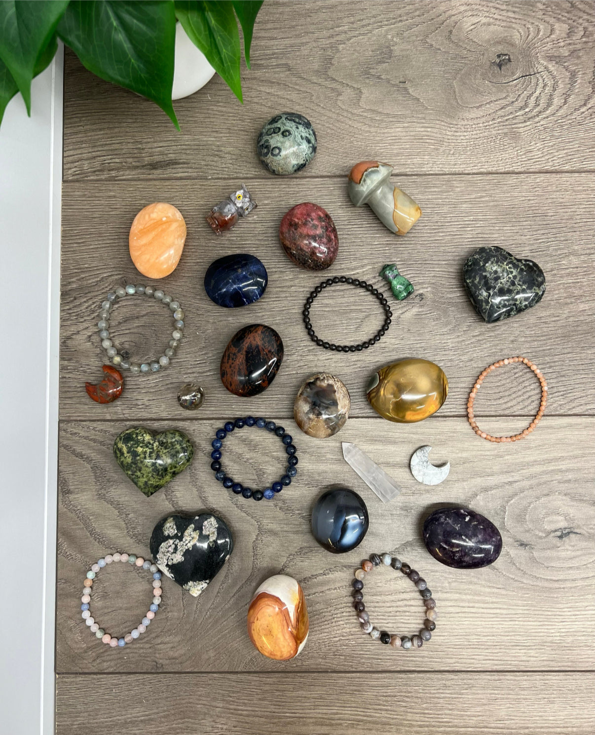 High quality tumbles, palm stones, worry stones, crystal chips, bracelets, pendants, celestial charms, and more!